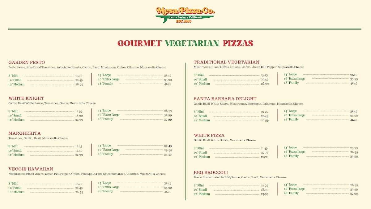 Welcome to Mesa Pizza Co, a charming gem located at 315 Meigs Rd K, Santa Barbara, CA. Renowned for its exceptional and flavorful pizzas, Mesa has delighted generations of customers like Mark Maxwell, who has cherished its quality since childhood. The menu showcases a diverse range of unique offerings, including the standout veggie Hawaiian and the flavorful Thai chicken pizza, hailed by Brian DuRoss as the best in Santa Barbara.